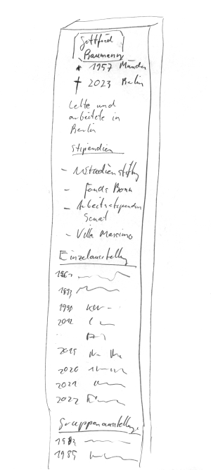 Für sein Alter sieht Frank super aus. Obwohl er auf kurzem Weg zur Vollglatze ist und auch schon einen altersgerechten Bauchansatz hat, der, zugegebenermaßen, schlimmer hätte sein können bei seinem Alkoholkonsum, den man regelmäßig nennen muss. Und genau genommen weiß er auch gar nicht mehr, ob er noch trinkt, weil er intensiver empfinden will, um „zu brennen und die Lebenswut zu spüren“, wie er das früher immer getan hat oder ob er doch schon eher trinkt, um etwas weniger zu empfinden, um das eigene Ausglühen mit einer angemessenen Ablöschung zu begleiten. Er ist mittendrin in der schwerelosen Rutschpartie, die Alterungsprozess heißt und die, unaufhaltsam, alles mit sich reißen wird, was jetzt noch klar und fest ist. „Das weiß ich doch auch“, sagt Frank. „Ist aber alles auch eine Frage der Sichtweise“, sagt er dann noch. Frank hat drei Kinder mit drei Frauen, die jetzt von ihrer Umgebung allerdings überwiegend als Mütter wahrgenommen werden. „Kann ich ja nichts für“, erklärt Frank, „ich habe es den Kindern immer wieder angeboten, mal bei mir zu wohnen“, aber die wollten nicht und so hat er sich seine häusliche Unabhängigkeit bewahrt und lebt mit wechselnden Partnerinnen. Leisten kann er es sich und außerdem „ zahl ich ja die ganze Kohle für die Schulen in England, da muss ich schon ganz schön für rödeln.“ Frank möchte unbedingt anonym bleiben, weil er seinen Namen auf keinen Fall in irgendeinem Zusammenhang „mit diesem ganzen Altersscheiß“ lesen möchte. „Kunst und Alter, was ist das denn für ein beschissenes Thema. Wie willst du denn da auf den Punkt kommen, das ist doch für jeden vollkommen anders, das ist wie Metzger und Alter, das ist mir zu beliebig. Ich fühle mich gut, ich hab zu tun und reite die Welle noch ein paar Jährchen. Der Rest ist mir scheißegal.“